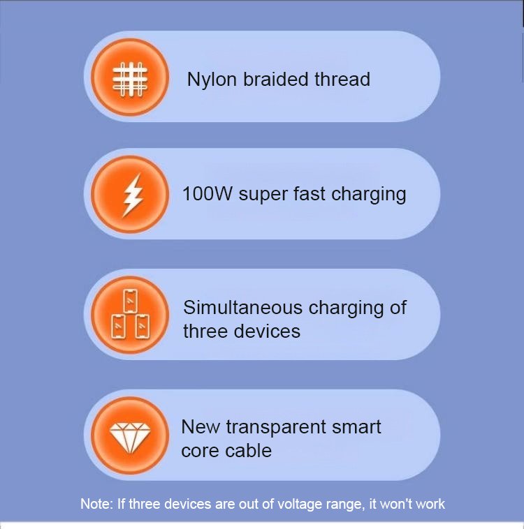 Transparent Luminous Super Fast Charging 3-in-1 Data Cable