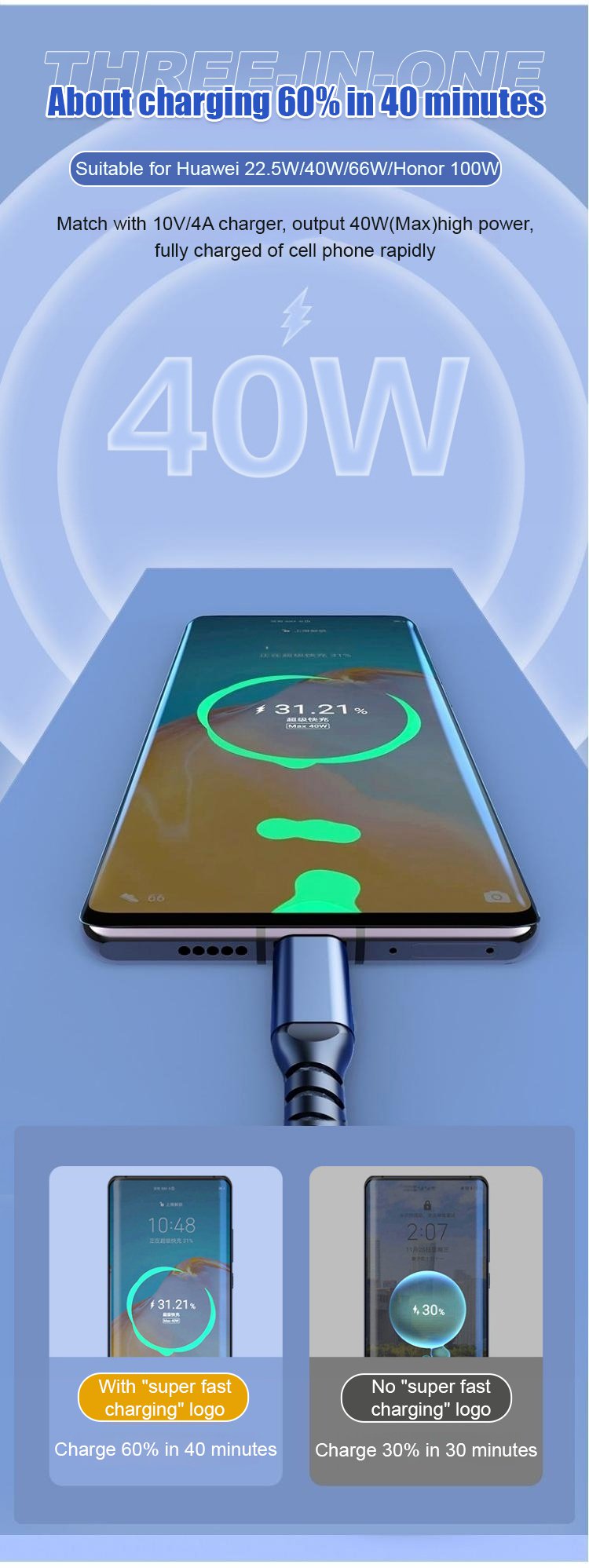 Experience lightning-fast charging with the Transparent Glow Super Fast Charging 3-in-1 Data Cable!